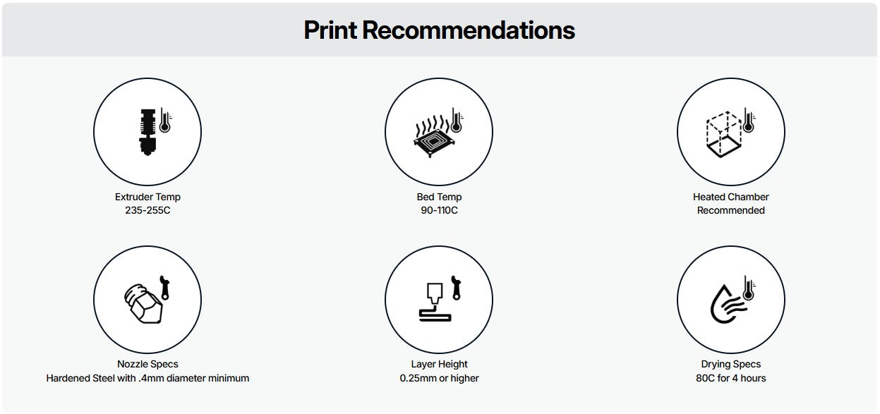 - Greatly improved stiffness, modulus, and dimensional stability thanks to the addition of carbon fiber reinforcement