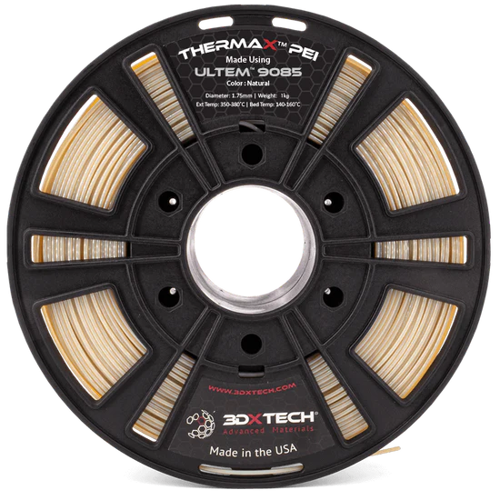 3DXTECH produces this 3D printing filament using a specialty compound custom-formulated using ULTEM 9085 resin and advanced carbon nanotube additives. ULTEM PEI is an amorphous, high-performance polymer that combines excellent mechanical, thermal, and chemical resistance properties.