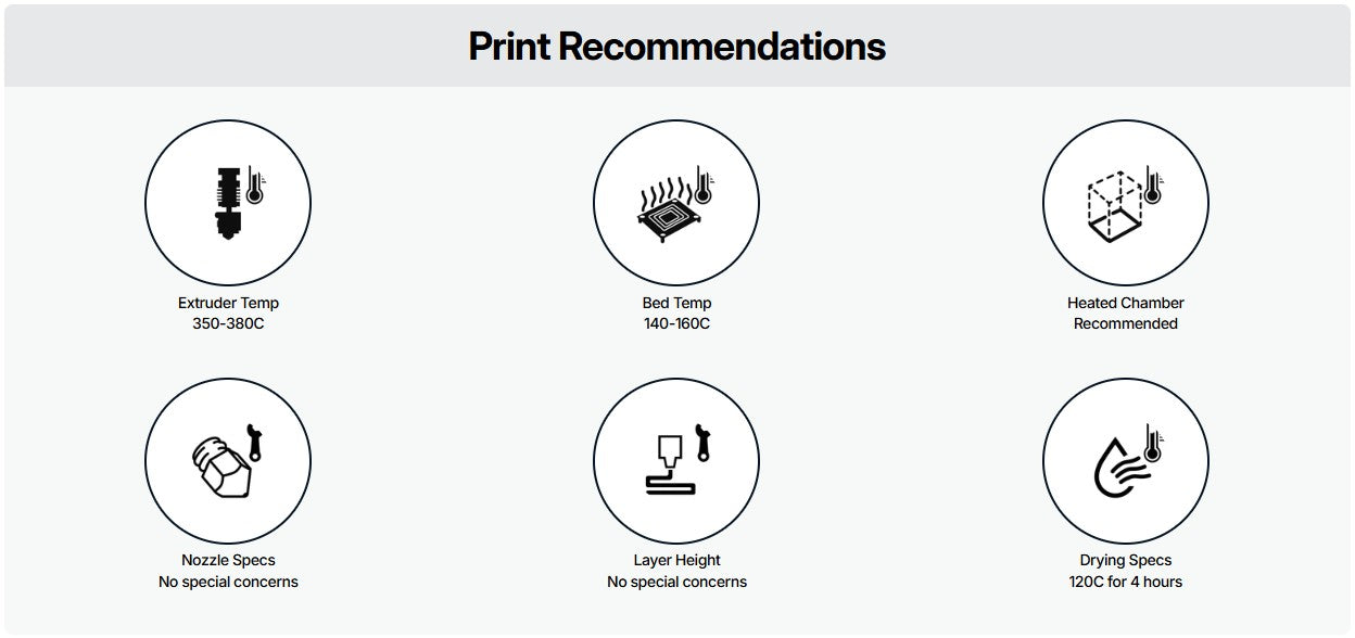 3DXTECH PEI-based filaments offer the ability to create parts with excellent properties at elevated temperatures due to a very high glass transition temperature (Tg). Ideal for use in critical applications which require electrostatic discharge (ESD) protection, a high level of cleanliness, and the outstanding thermal and chemical properties you’ve come to expect with PEI based compounds.