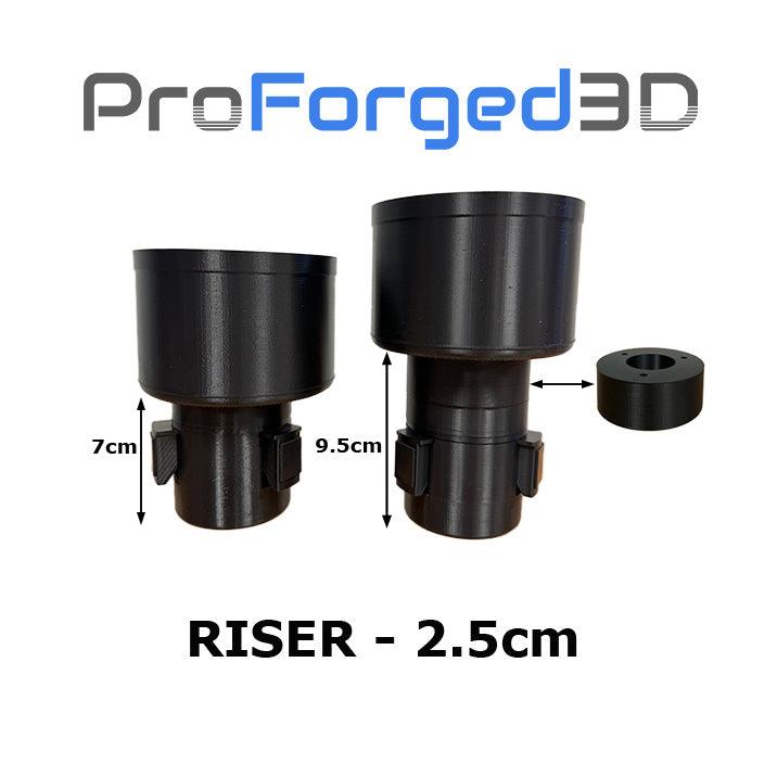 - Riser 2.5 cm : This riser sits between the expandable base and the cup holder component, raising the depth of the expandable base by 2.5cm to give extra lift for those deep consoles.